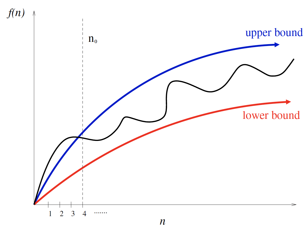 - Average-case: means is an upper bound on and is a lower bound on , for all . Thus, there exist constants and such that and for all . This means that provides a nice, tight bound on .