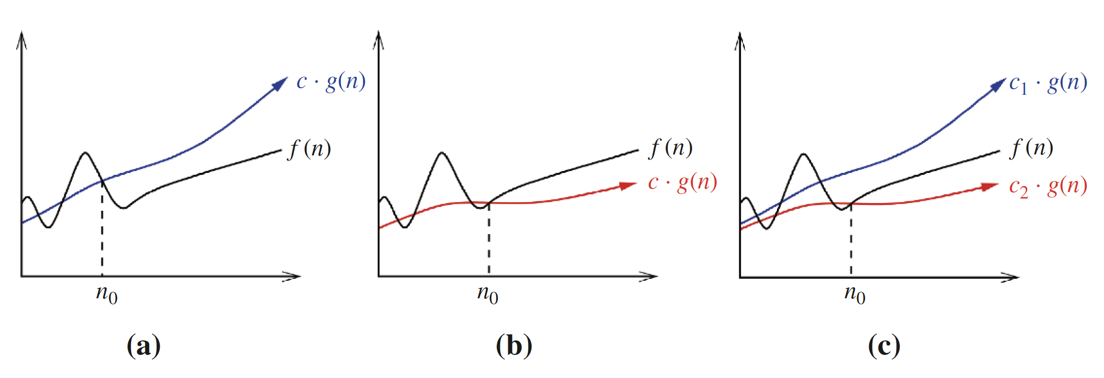 Each of these definitions assumes there is a constant beyond which they are satisfied. We are not concerned about small values of , anything to the left of . After all, we don't really care whether one sorting algorithm sorts six items faster than another, but we do need to know which algorithm proves faster when sorting 10,000 or 1,000,000 items. The Big Oh notation enables us to ignore details and focus on the big picture.
