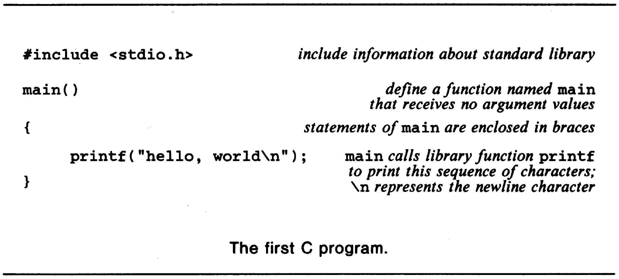 Let us begin with a quick introduction to C. Our aim is to show the essential elements of the language in real programs, but without getting bogged down in details, rules, and exceptions. At this point, we are not trying to be complete or even precise (save that the examples are meant to be correct). We want to get you as quickly as possible to the point where you can write useful programs, and to do that we have to concentrate on the basics: variables and constants, arithmetic, control flow, functions, and the rudiments of input and output. We are intentionally leaving out of this chapter features of C that are important for writing bigger programs. These include pointers, structures, most of C's rich set of operators, several control-flow statements, and the standard library.