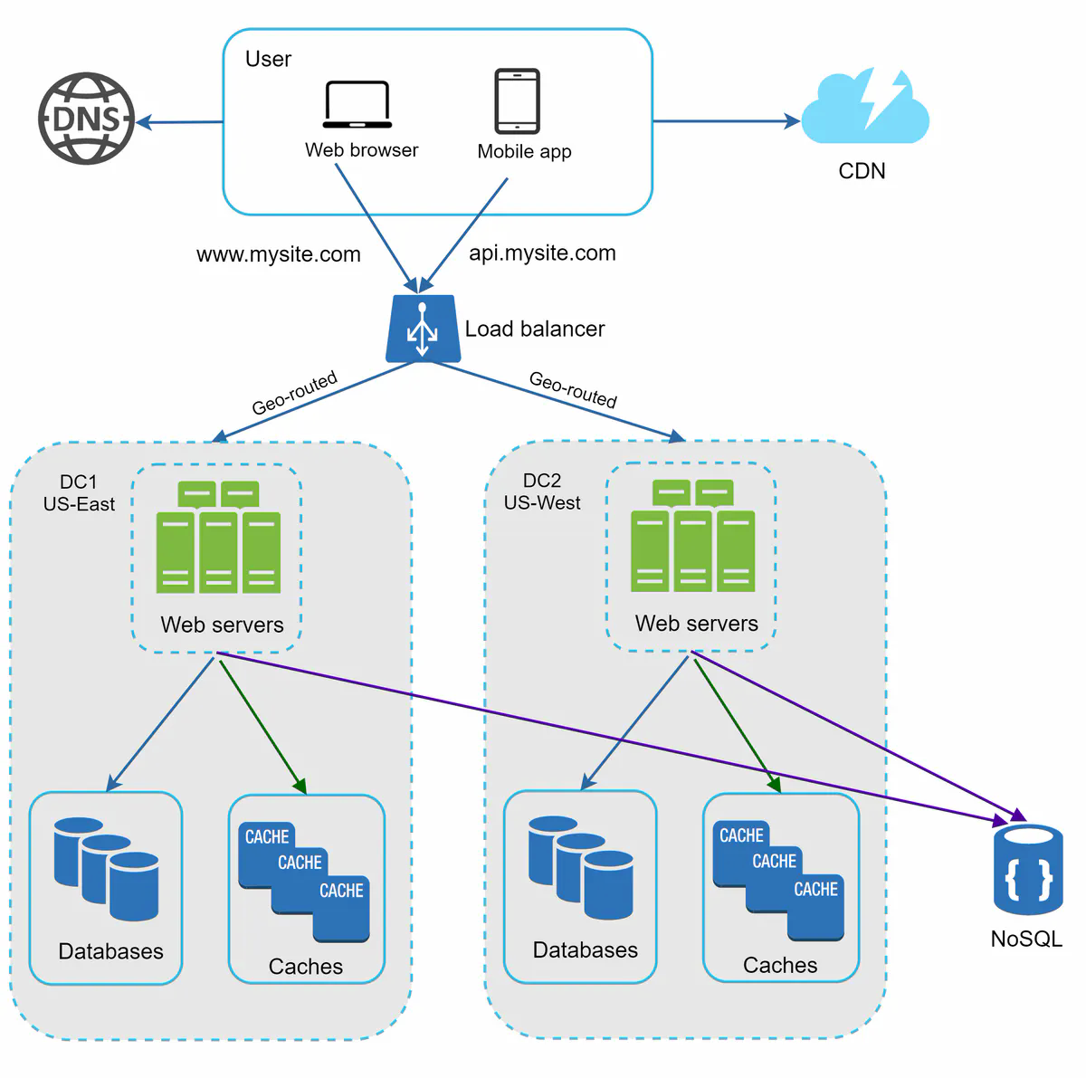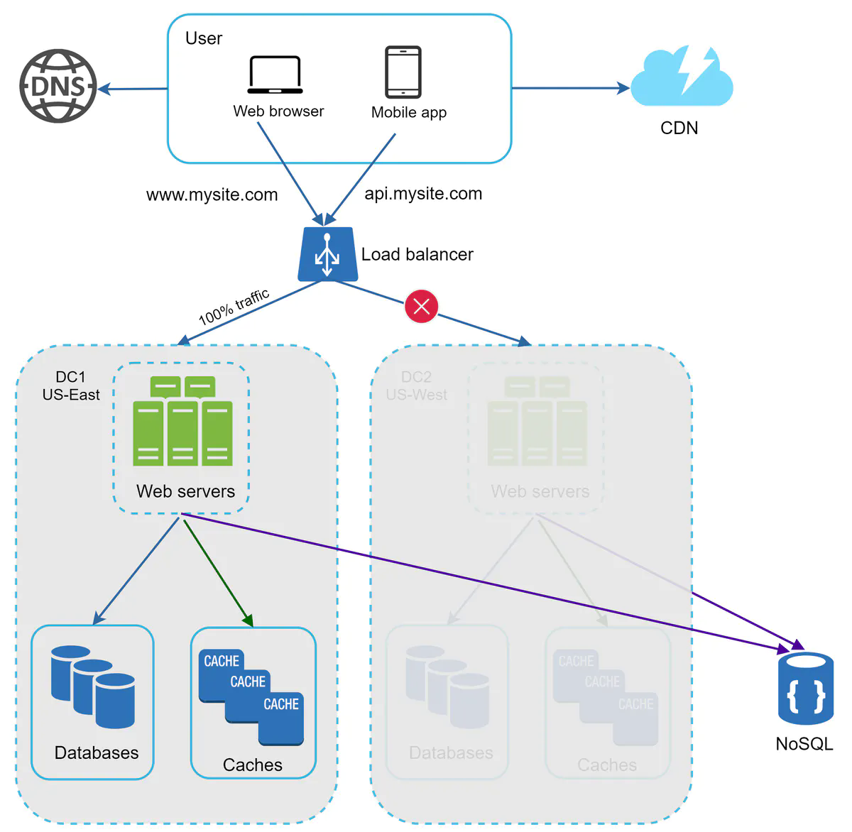 - Traffic redirection: Effective tools are needed to direct traffic to the correct data center. GeoDNS can be used to direct traffic to the nearest data center depending on where a user is located.