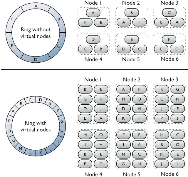 If we add a new node to the cluster, it automatically rebalances the virtual nodes among all nodes. No manual resharding is required. See Cassandra’s official documentation for more details [22].