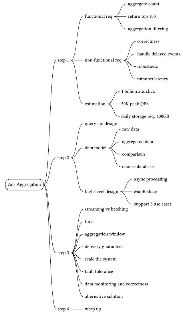 In this chapter, we went through the process of designing an ad click event aggregation system at the scale of Facebook or Google. We covered: