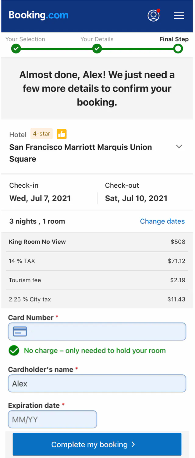 - View the booking page. Users can confirm the booking details, such as dates, number of guests, payment information before booking (query).