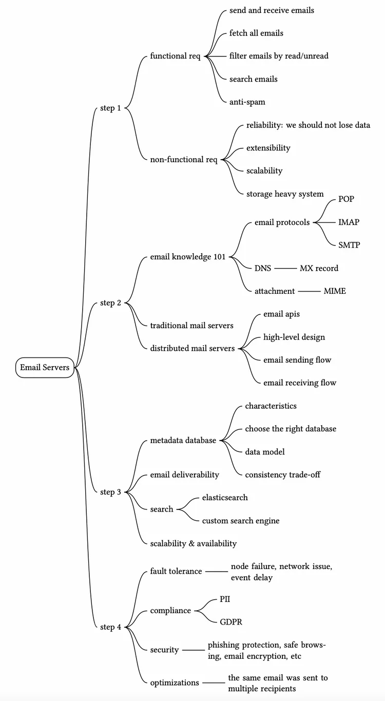 Over the years, email services have changed significantly in complexity and scale. A modern email service is a complex system with many features. There is no way we can design a real-world system in 45 minutes. So before jumping into the design, we definitely want to ask clarifying questions to narrow down the scope.